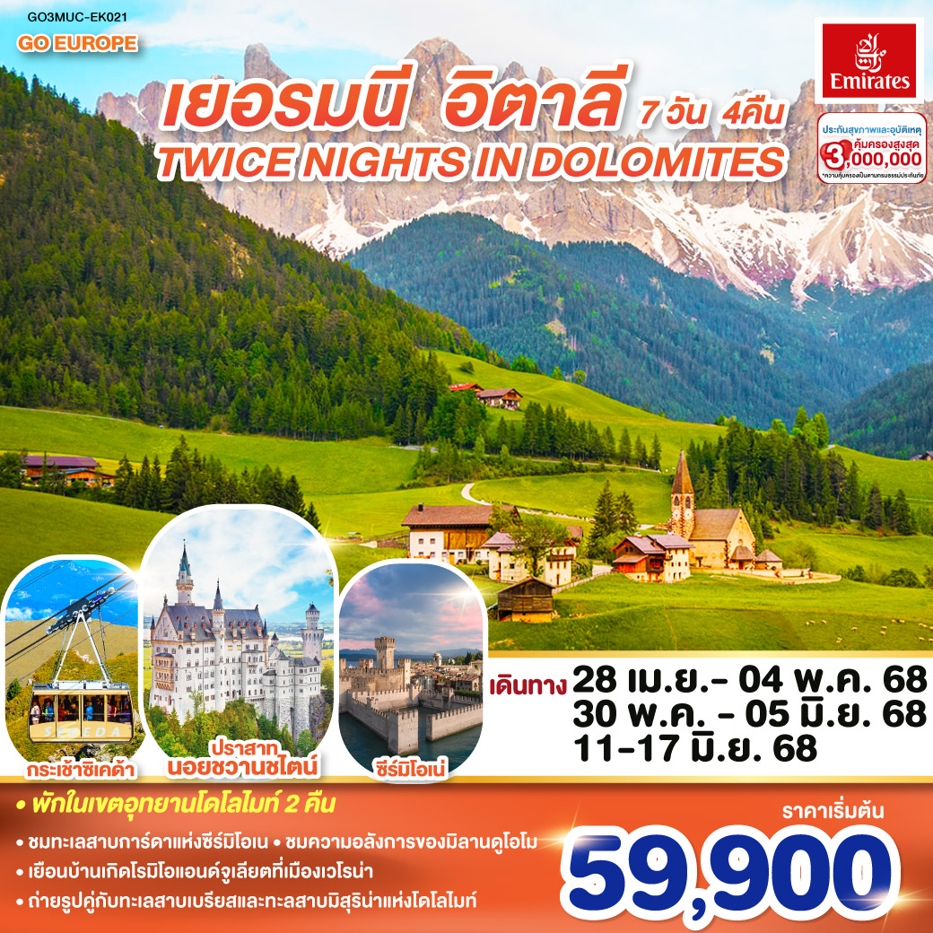 เที่ยวเยอรมนี ชมความงาม "โดโลไมท์" ที่สุดแห่งขุนเขายุโรป เยือนปราสาทเทพนิยาย ชมเมืองเวนิส ช้อปตลาดคริสต์มาสมิลาน